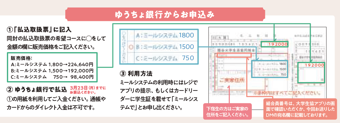 2026年度在校生の皆さんのご自宅にミールパンフレットが届きます。パンフレットに新プラン内容とご加入方法を記載しておりますので、ぜひご継続よろしくお願いいたします
