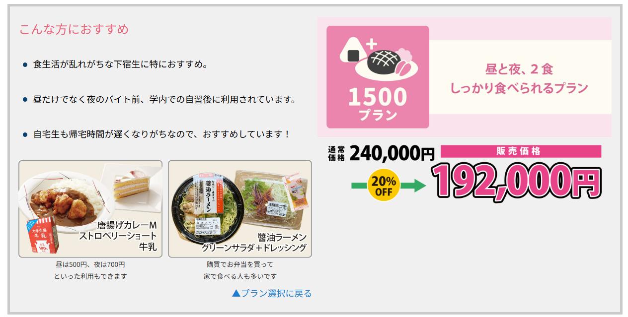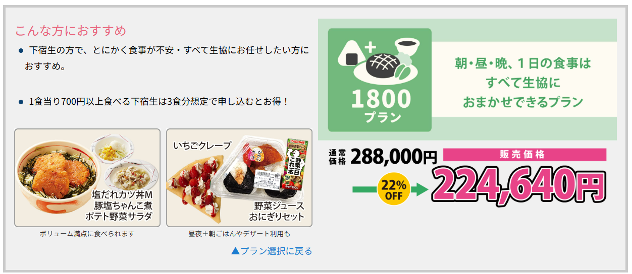 1年分の食費を前払い頂くことで最大27%お得に生協食堂・ショップをご利用いただけます。 - 生協ショップでの利用も可能