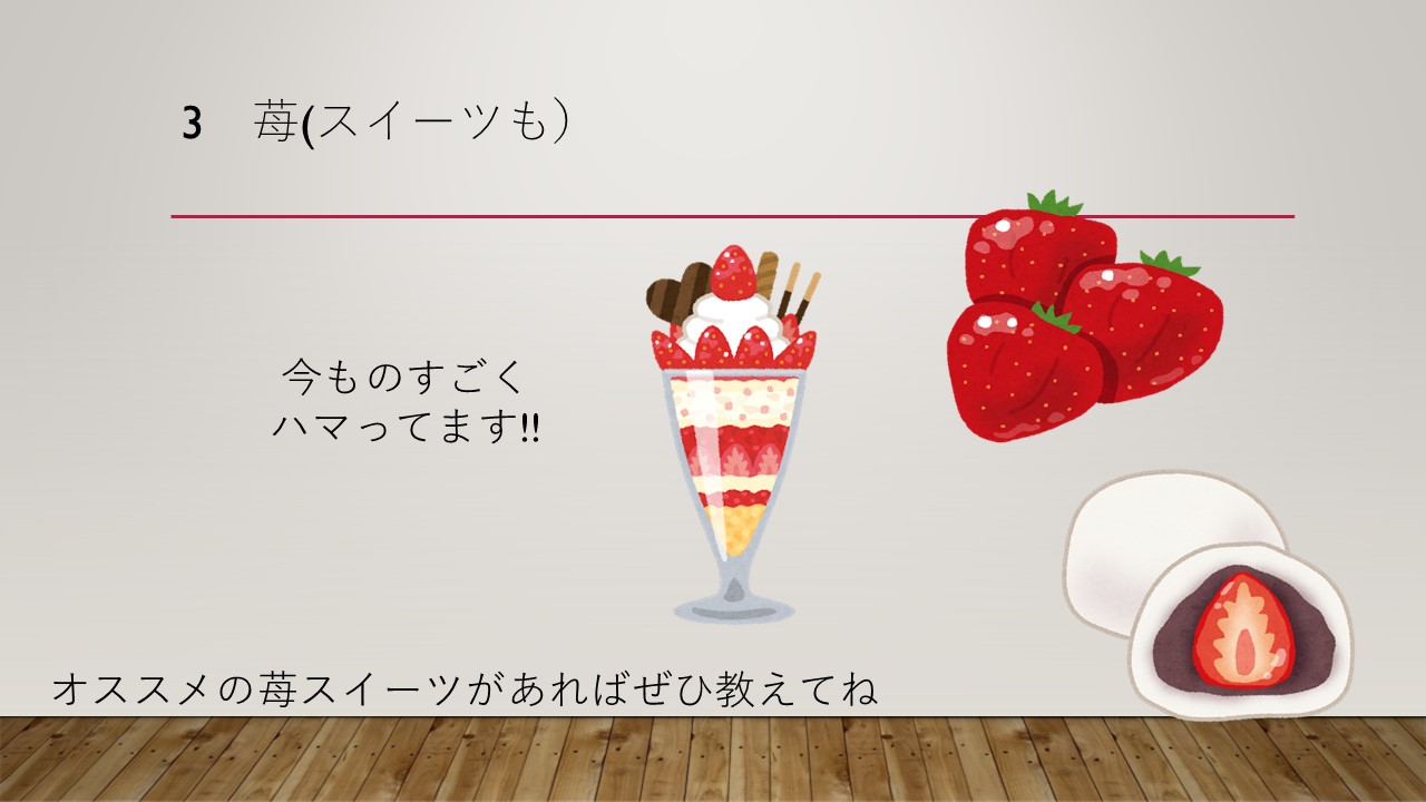 自分の趣味についてプレゼンする機会だったので自分のことと魅力を伝えられるように工夫して資料作りをしました。