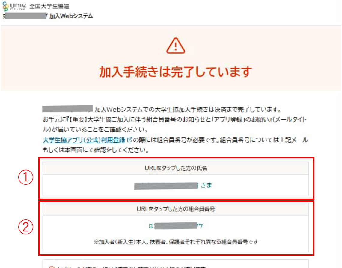 - 【龍谷大学生協 加入Webシステム】□□者が確認URLをタップしました