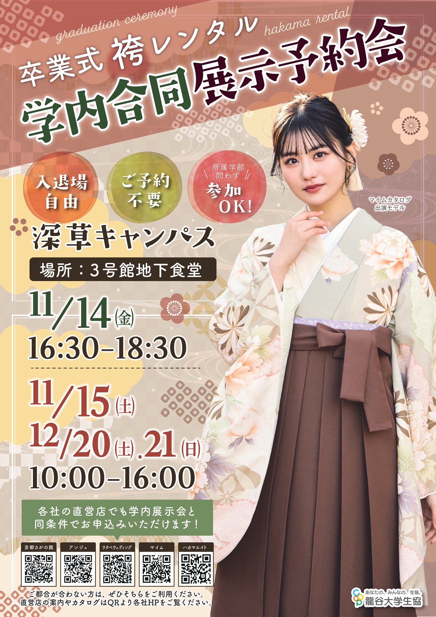 卒業式当日に着用する袴レンタルの学内合同予約会をこの秋も開催します!