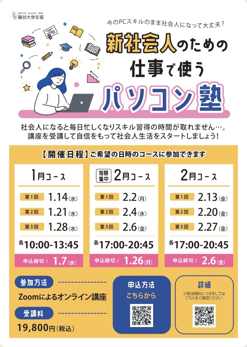 社会人は大学生活以上にパソコンを使う機会が増えると思います。使うソフトや求められるスキルの幅も広がっていきます。新たにスキル習得をする時間は「今」かもしれません!