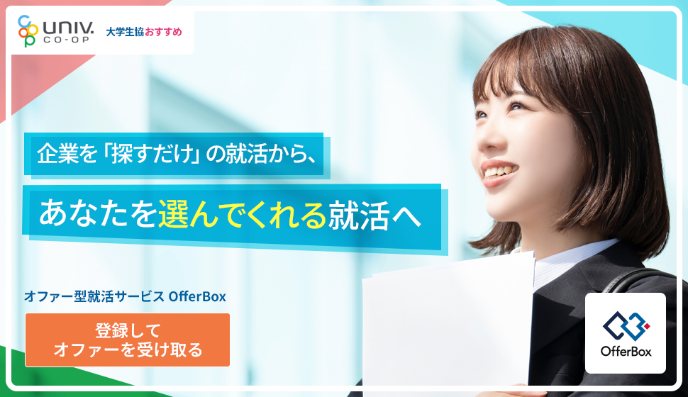 就活アプリ「OfferBox」は、企業からのオファーで始まるため、自分では気づけなかった可能性に気づけるチャンス!
