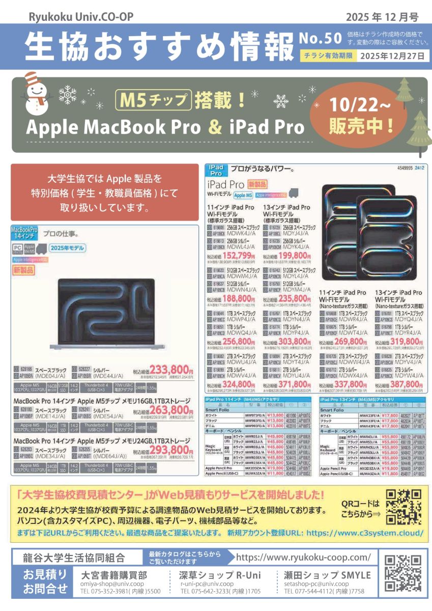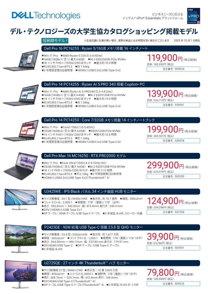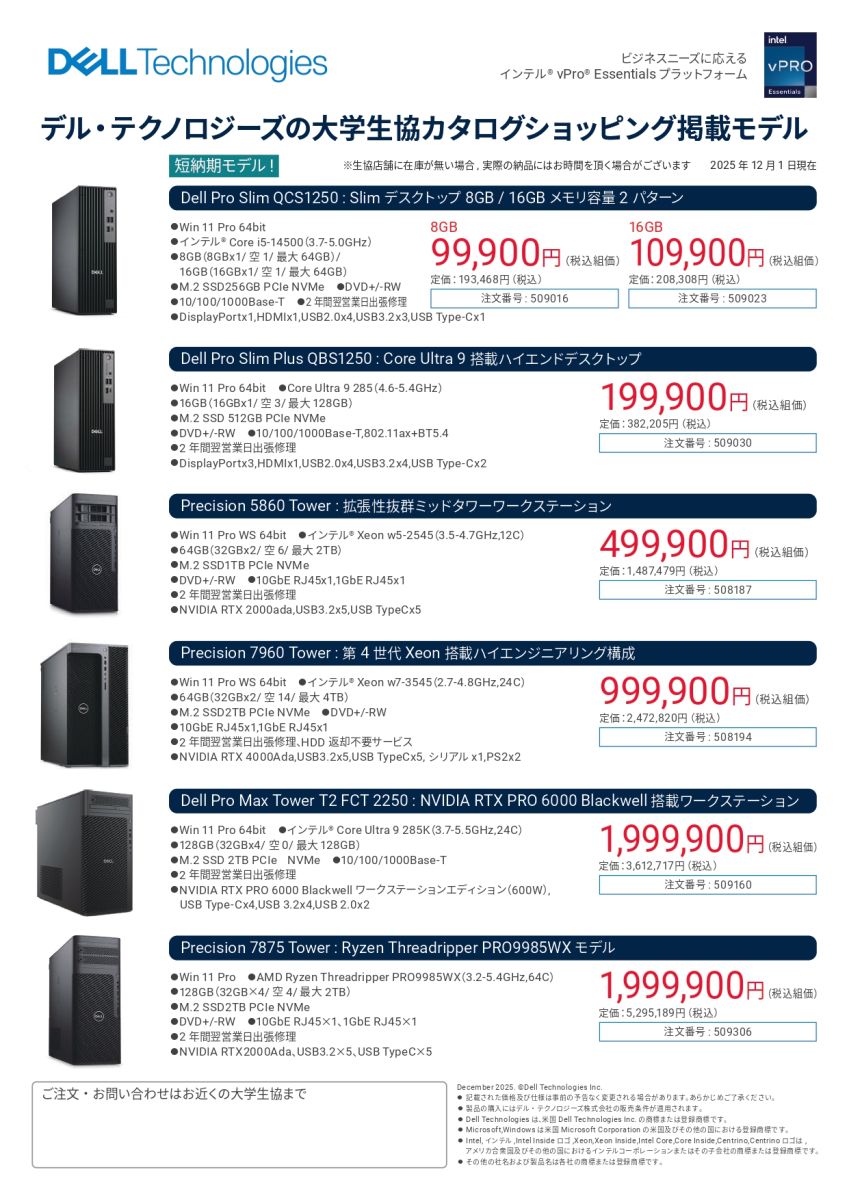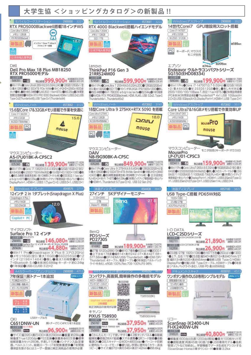 PC最新モデルやお買い得品、周辺機器、サプライ品などを生協価格でご購入できます。勉学に、研究に、大学生活の充実に、ぜひご利用ください!